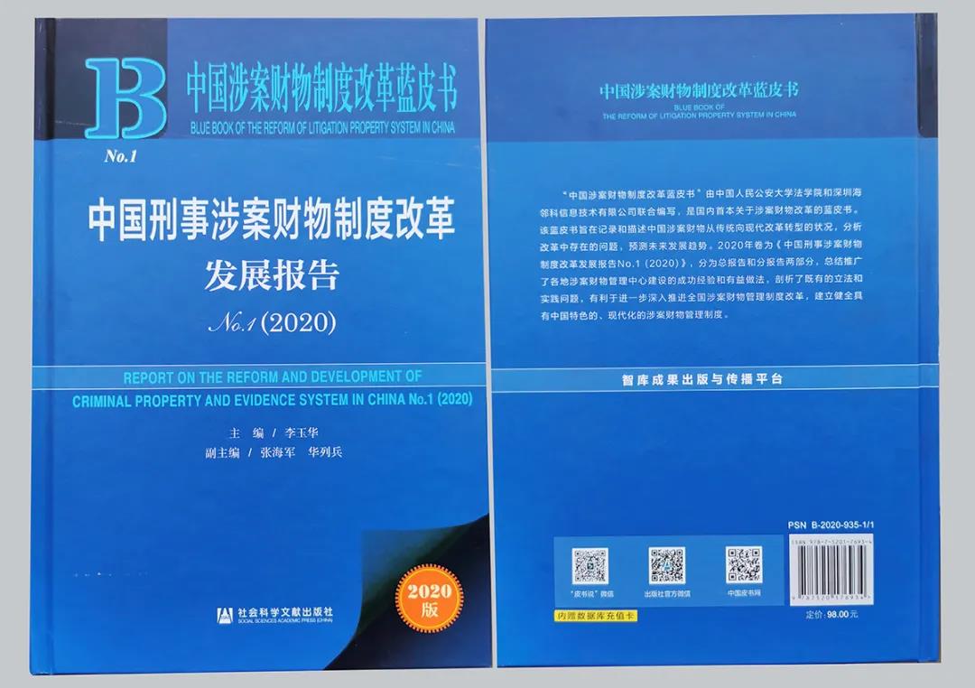 自2019年11月召開(kāi)中國(guó)刑事涉案財(cái)物改革報(bào)告2020藍(lán)皮書(shū)啟動(dòng)會(huì),到2020年12月《中國(guó)刑事涉案財(cái)物改革報(bào)告2020》藍(lán)皮書(shū)正式發(fā)布,歷時(shí)1年多完成內(nèi)容的編寫(xiě)和出版。該書(shū)是目前國(guó)內(nèi)第一部研究涉案財(cái)物改革發(fā)展的報(bào)告,由中國(guó)人民公安大學(xué)法學(xué)院院長(zhǎng)李玉華擔(dān)任主編,深圳市海鄰科信息技術(shù)有限公司總裁張海軍和北京市公安局副局長(zhǎng)華列兵為副主編,社會(huì)科學(xué)文獻(xiàn)出版社出版。該書(shū)分為總報(bào)告和城市地區(qū)分報(bào)告,總報(bào)告包括改革背景、改革政策與法律、改革實(shí)踐與探索以及未來(lái)發(fā)展;城市地區(qū)分報(bào)告主要挑選部分城市地區(qū),歸納總結(jié)各地涉案財(cái)物管理的先進(jìn)做法和經(jīng)驗(yàn),快速推動(dòng)中國(guó)涉案財(cái)物制度的改革和發(fā)展。