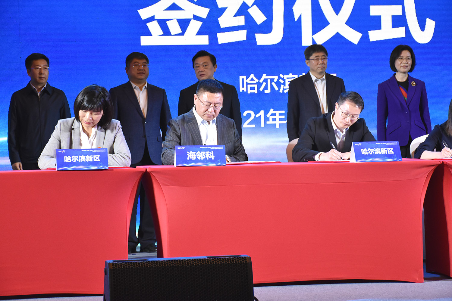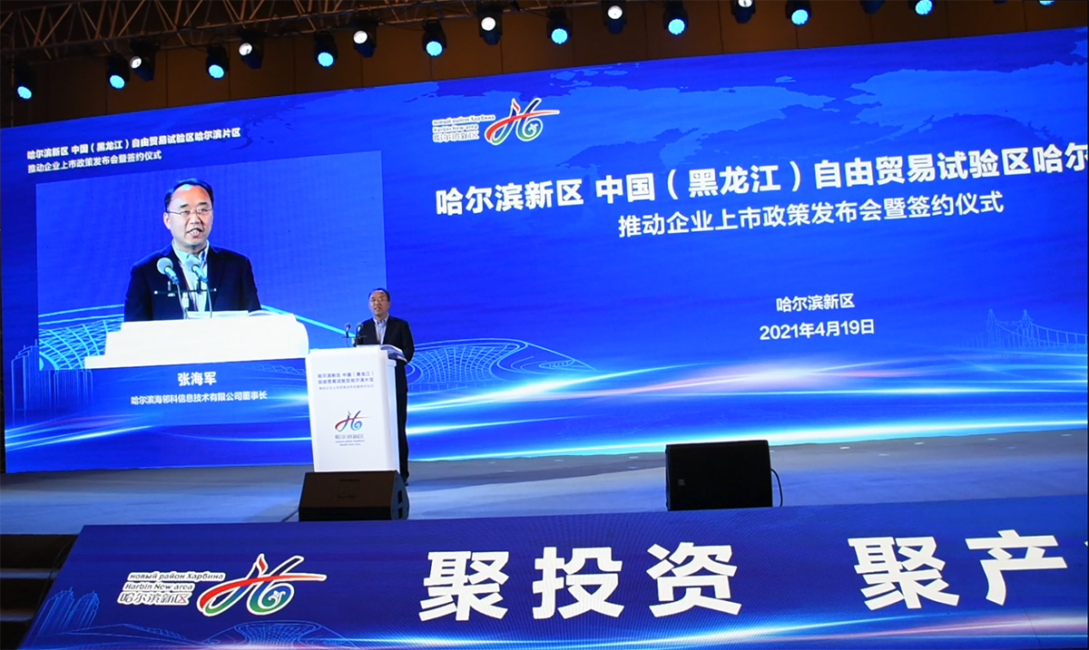 4月19日,哈爾濱新區(qū)中國(黑龍江)自由貿(mào)易試驗區(qū)哈爾濱片區(qū)推動企業(yè)上市政策發(fā)布會暨簽約儀式在萬達文華酒店舉行,黑龍江省市領(lǐng)導(dǎo)王兆力、沈瑩、代守侖、鄭大泉、孫恒義等出席會議。海鄰科公司作為哈爾濱新區(qū)企業(yè)受邀參會。