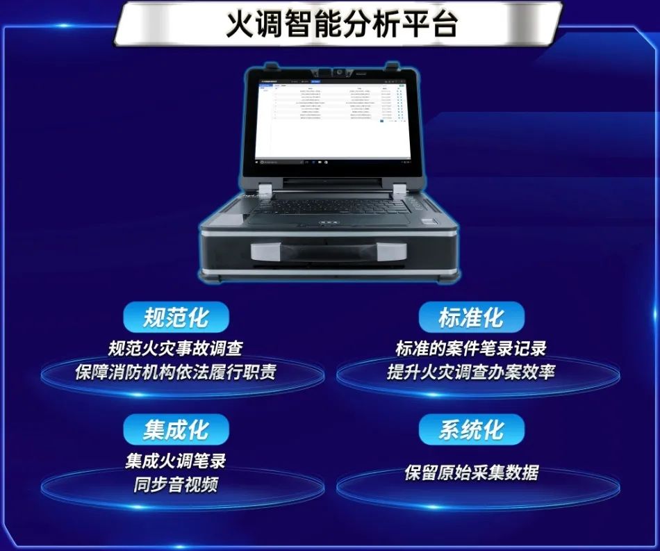 火調(diào)智能分析平臺(tái),以火調(diào)一體箱為載體,內(nèi)置火災(zāi)調(diào)查智能問詢系統(tǒng)、消防火調(diào)三維遠(yuǎn)程勘驗(yàn)平臺(tái),支持二代身份證讀取、打印機(jī)、光盤刻錄、證據(jù)掃描存檔等功能模塊,同時(shí)可集成火調(diào)執(zhí)法其他相關(guān)軟件,是專門為火災(zāi)事故調(diào)查現(xiàn)場(chǎng)而定制的一體化移動(dòng)終端。