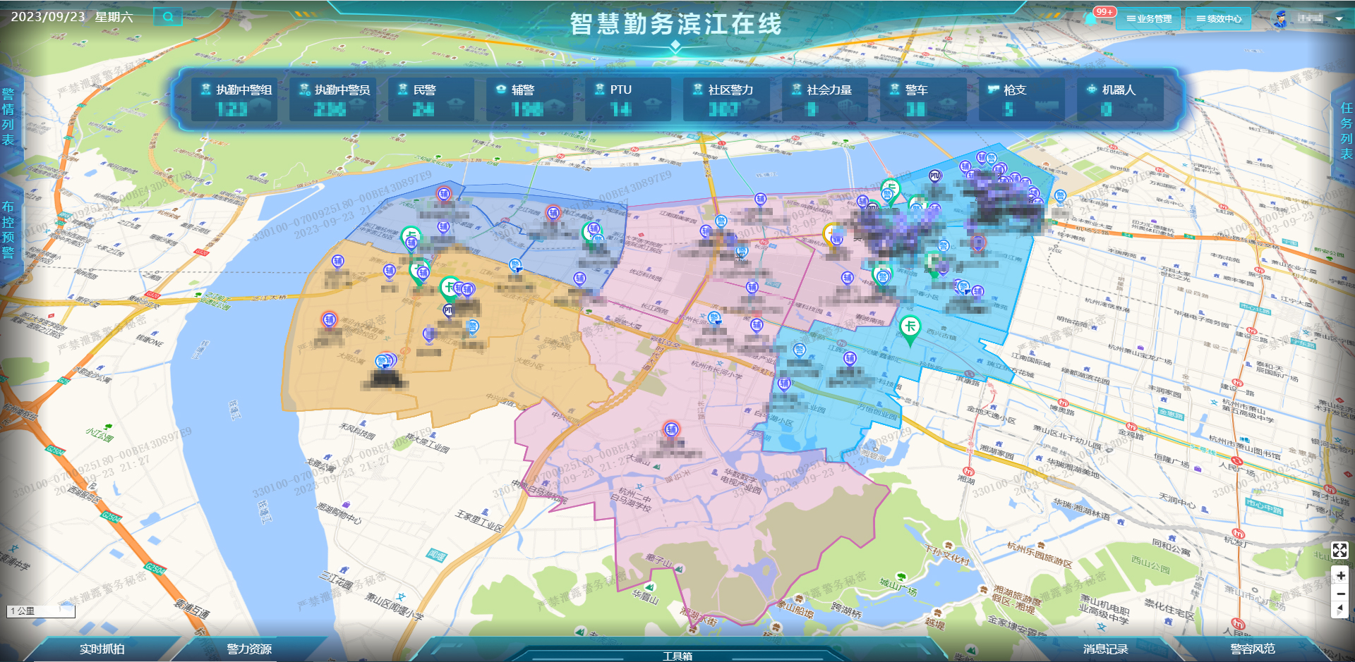 在杭州亞運會進行時,“濱江勤務助手”APP 累計上線民警近萬次,通過可靠的秒級定位更新頻率以及亞米級定位精度,以崗位任務、警力位置實時上圖的模式,實時展示各個關鍵部位人員勤務在崗情況,協(xié)助指揮中心扁平化指揮,完成警力快速調配,指令一鍵到達的警務指揮效果,精準高效。