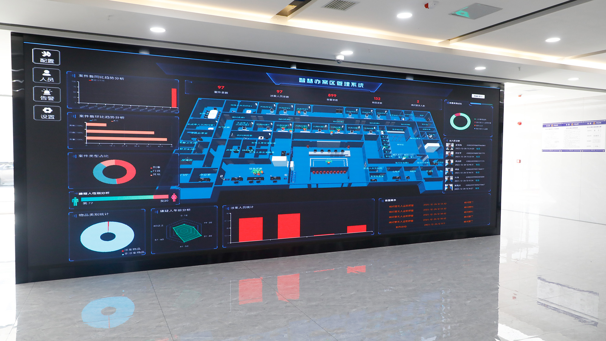 海鄰科公司依據(jù)《公安信息化建設(shè)“十四五”規(guī)劃》和《關(guān)于進一步推動執(zhí)法辦案管理中心提質(zhì)增效的意見》的要求,結(jié)合茶陵本地執(zhí)法辦案實戰(zhàn)需求,通過茶陵縣公安局執(zhí)法辦案管理中心的建設(shè),融入當前國內(nèi)多項先進智能警務(wù)科技成果,實現(xiàn)對“人”“物”“卷”“場”等執(zhí)法要素的監(jiān)督,形成對人員、場所、財物、流程、規(guī)劃的全方位管理,是集執(zhí)法辦案區(qū)、案件管理區(qū)、涉案財物管理區(qū)、合成作戰(zhàn)、速裁法庭、非羈押人員動態(tài)管控、智能輔助等多功能于一體的“一站式”辦案場所,提供辦案活動、辦案流程智慧化服務(wù)保障和監(jiān)督管理,確保執(zhí)法辦案規(guī)范、高效、安全。