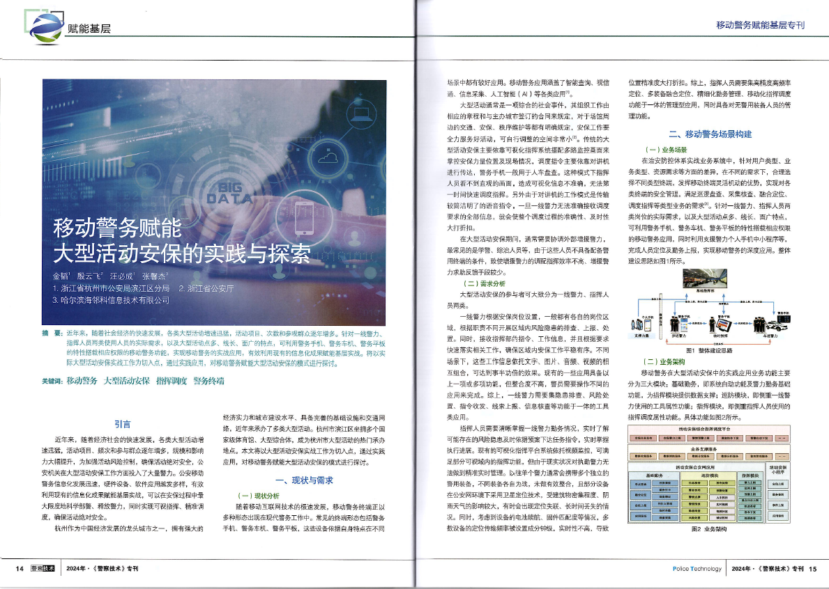 近日,中國《警察技術(shù)》雜志“移動(dòng)警務(wù)賦能基層”專刊,以“移動(dòng)警務(wù)賦能大型活動(dòng)安保的實(shí)踐與探索”為題,對浙江省公安廳、杭州市公安局濱江區(qū)分局和哈爾濱海鄰科信息技術(shù)有限公司聯(lián)合研發(fā)、探索和建設(shè)的移動(dòng)警務(wù)賦能大型活動(dòng)安保的實(shí)戰(zhàn)應(yīng)用進(jìn)行了專題分析和報(bào)道。海鄰科“移動(dòng)警務(wù)”技術(shù)應(yīng)用入選《警察技術(shù)》雜志。