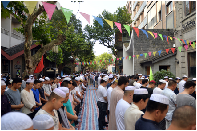 2016年7月6日清晨,5000余名中外穆斯林齊聚我國(guó)伊斯蘭教四大清真寺之一的杭州鳳凰寺,歡度伊斯蘭教傳統(tǒng)節(jié)日“開(kāi)齋節(jié)”。開(kāi)齋節(jié)是伊斯蘭教的三大節(jié)日之一,這一天穆斯林們穿上節(jié)日盛裝,到清真寺參加“會(huì)禮”和慶?;顒?dòng),恭賀“齋功”勝利完成。